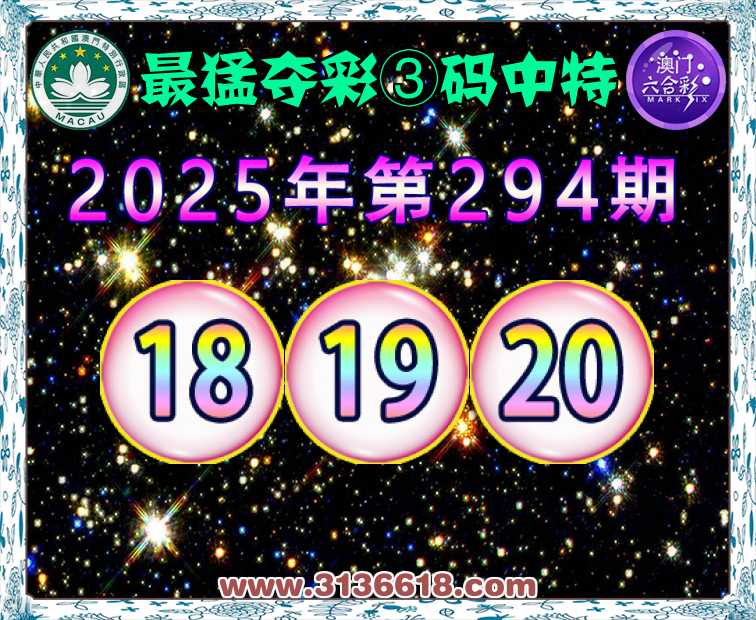 294期:『最猛夺彩』 ☘️③码中特☘️【18.19.20】开:18