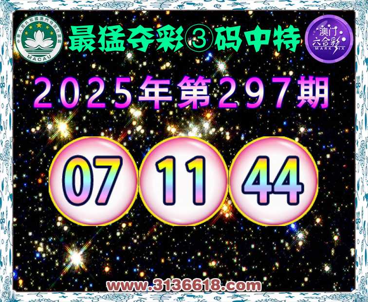 297期:『最猛夺彩』 ☘️③码中特☘️【07.11.44】开:44准上榜高手