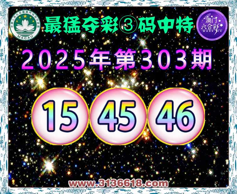 303期:『最猛夺彩』 ☘️③码中特☘️【15.45.46】开:15准上榜高手