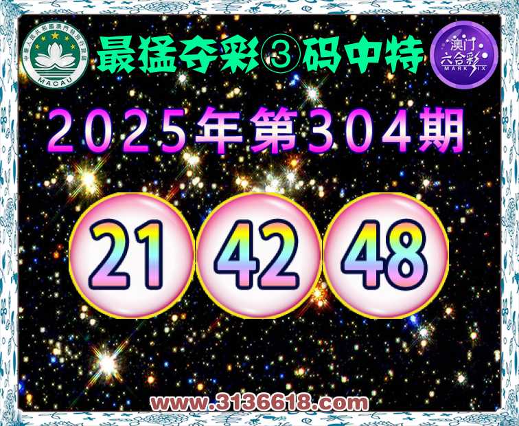 304期:『最猛夺彩』 ☘️③码中特☘️【21.42.48】开:48准上榜高手