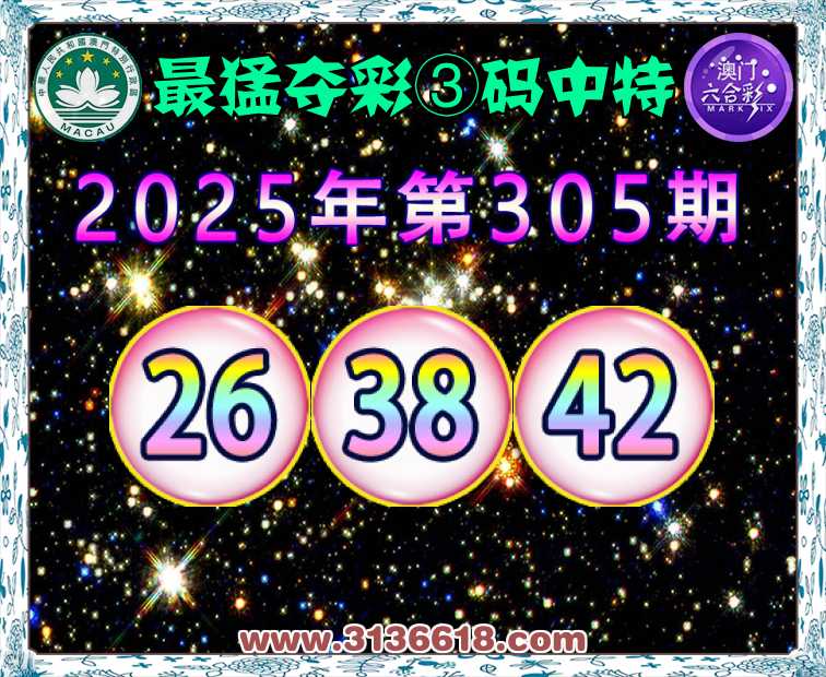 305期:『最猛夺彩』 ☘️③码中特☘️【26.38.42】开:42准上榜高手