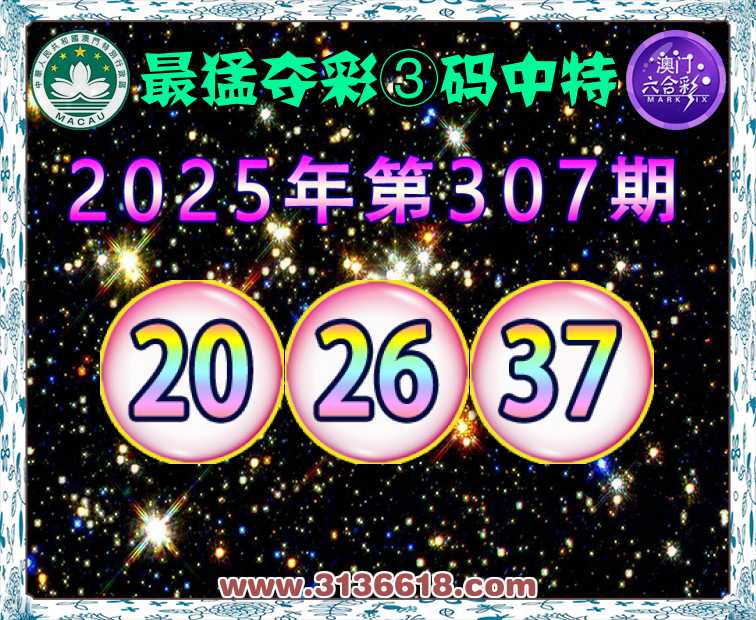 307期:『最猛夺彩』 ☘️③码中特☘️【20.26.37】开:20准上榜高手