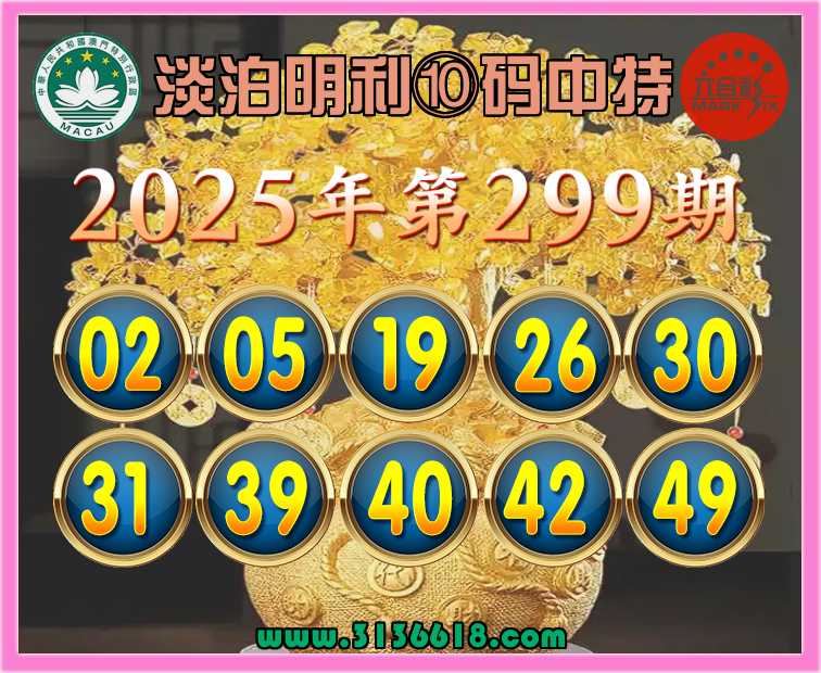 299期:【淡泊明利】 🏵️⑩码中特🏵️开:49准上榜高手