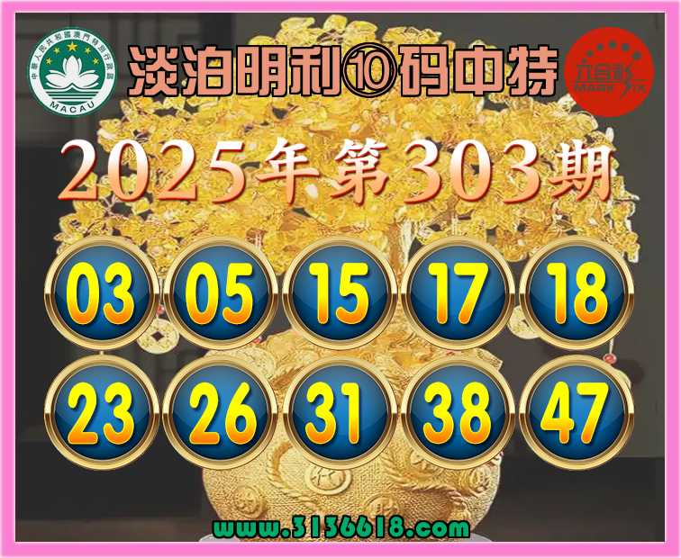 303期:【淡泊明利】 🏵️⑩码中特🏵️开:15准上榜高手